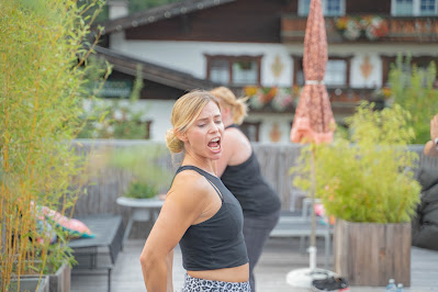 Vor der wunderschönen Bergkulisse trainierten wir gemeinsam mit der Steiner Wirtin Lisa.